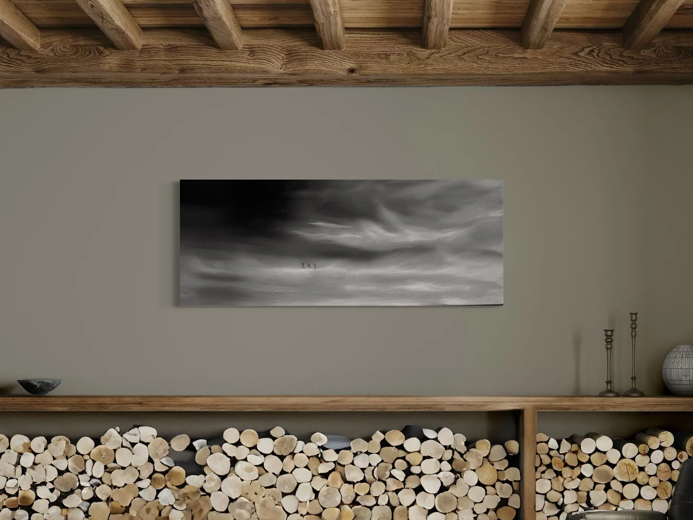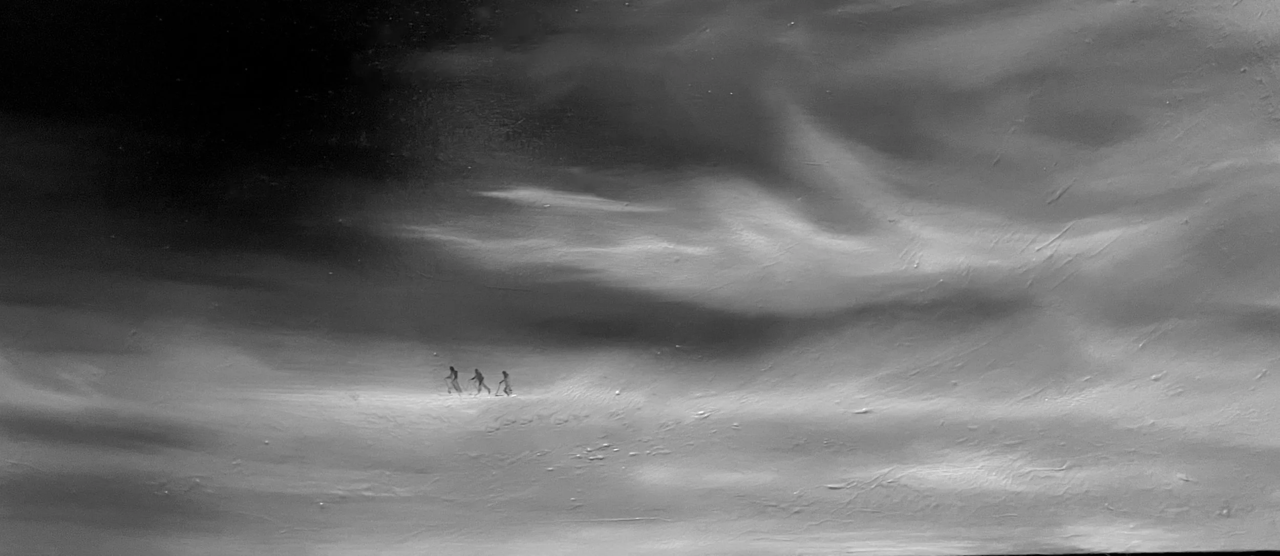 Snøføyk er det første oljemaleriet i samlingen. Oljemalingen gir muligheten til å skape større dybde og gir verket ett mer ektefølt utseende av snøstormen. Verket er malt i kjent stil med en moderne svart-hvit fargekontrast.