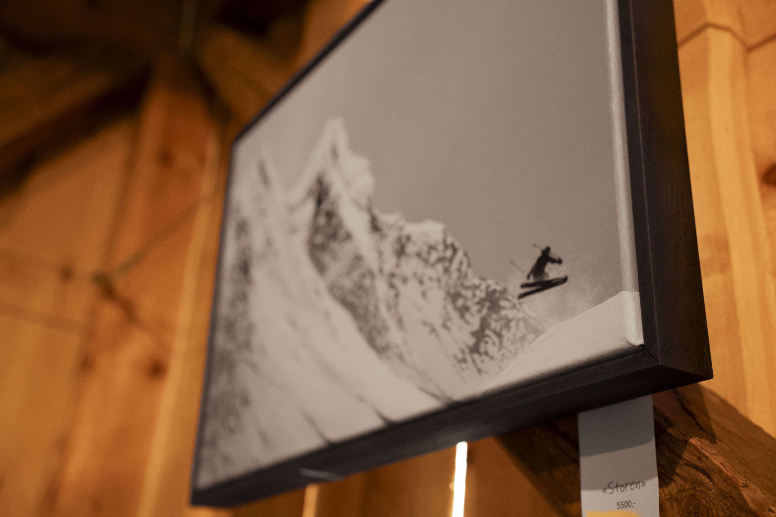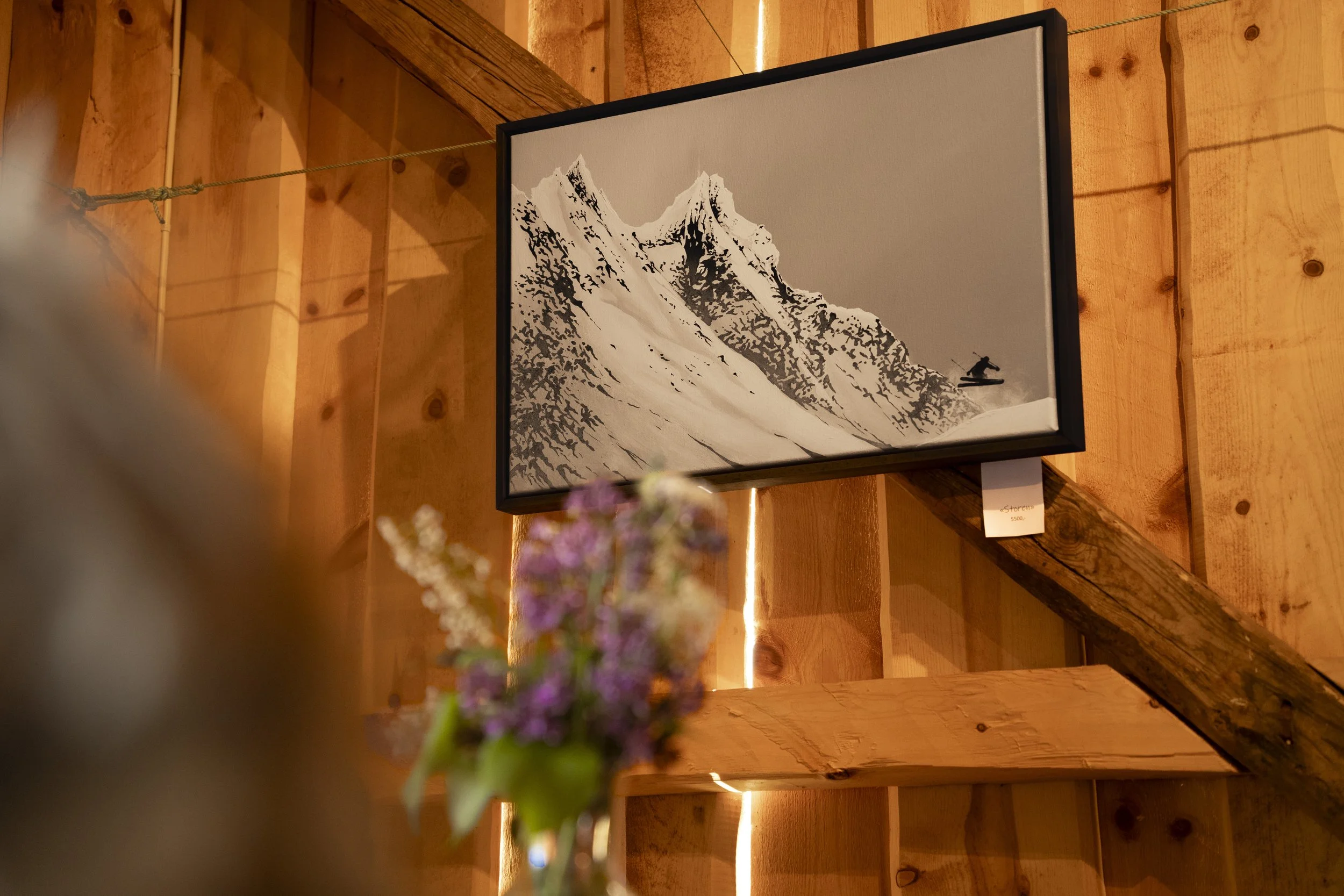 “Storen 0.2” er malt etter Store Skagastølstind, en velkjent tind i Hurrungane i Jotunheimen. Maleriet er malt i akrylmaling, med store kontraster i svart hvit maling.