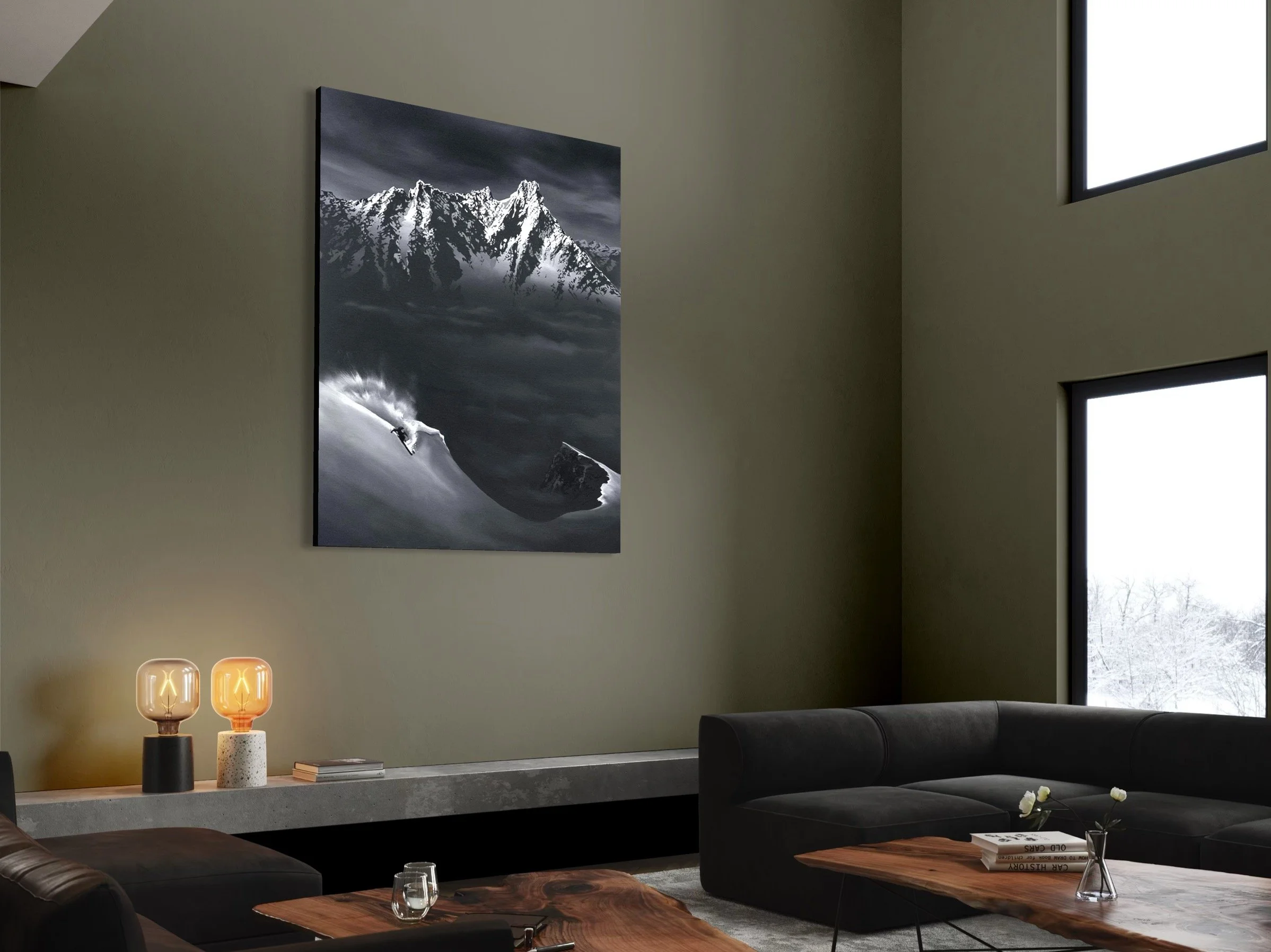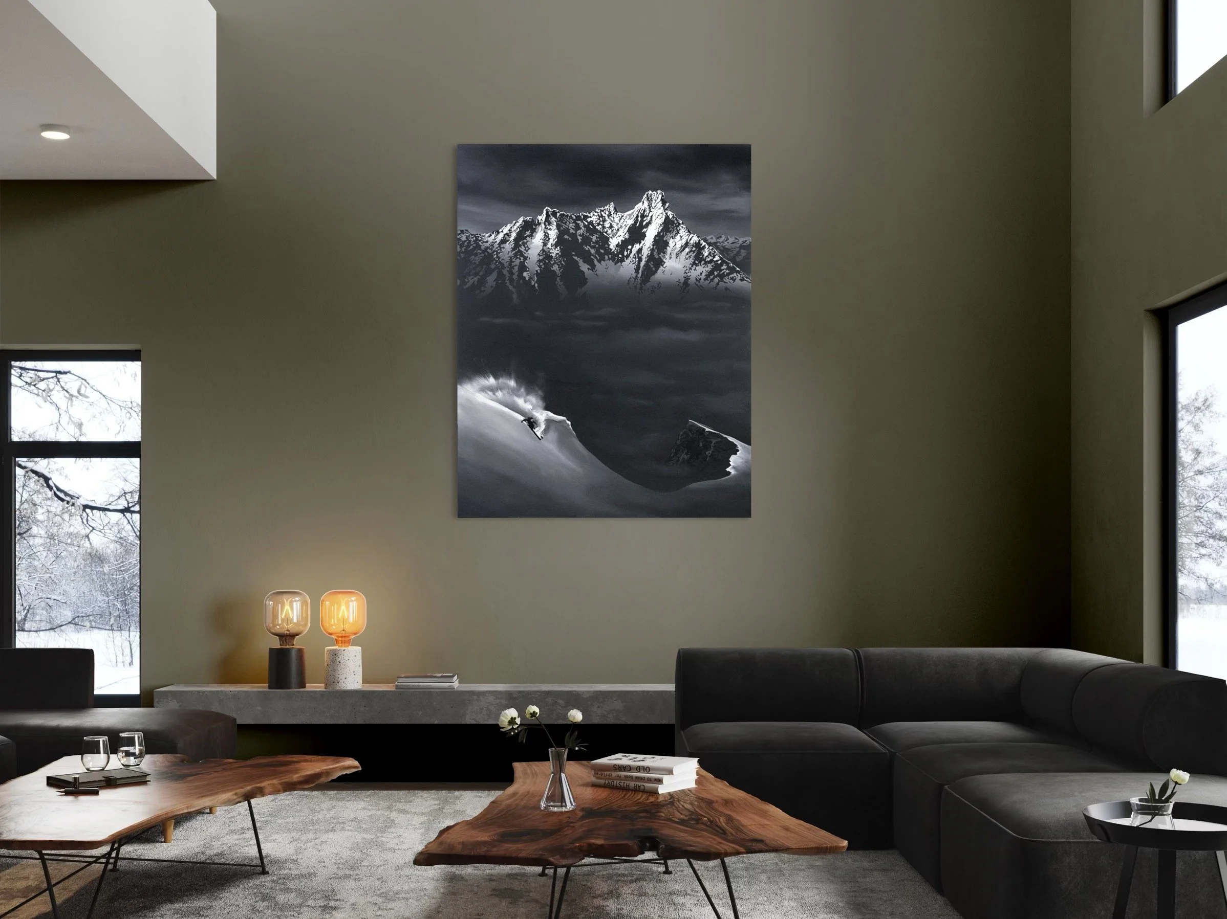 Verket “Store Skagastølstind” er malt etter de mest spektakulære og velkjente tindene i Hurrungane Jotunheimen, og formidler den ekte skigleden - følelsen av fart og frihet i storslått natur.