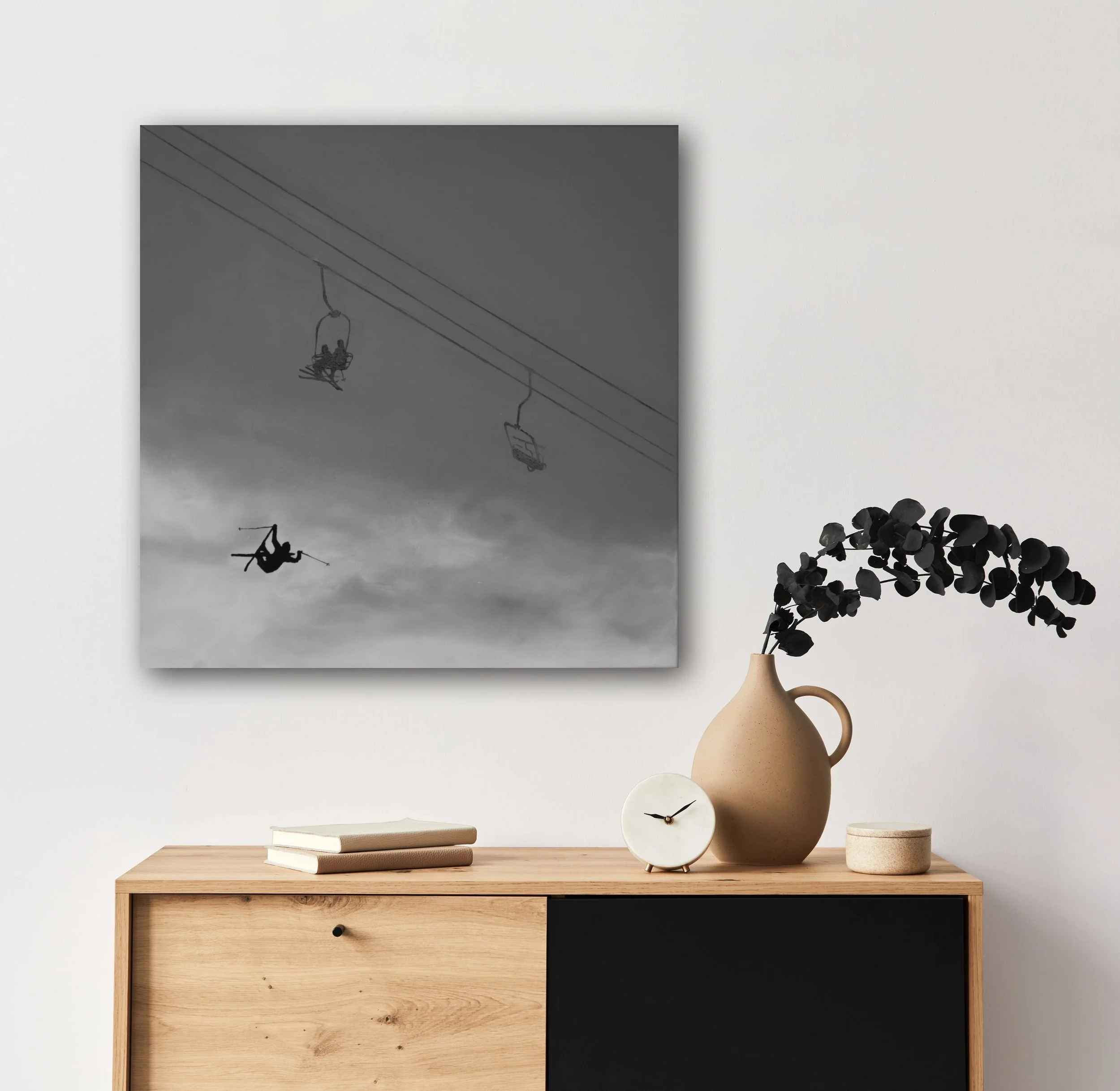 Tåkelagt er malt med en urban vri. I motsetning til de andre verka i samlingen kan man skue stolheisen som svever høyt over den tåkelagte dalen. Maleriet er malt i akrylmaling, med store kontraster i en moderne svart-hvit stil.